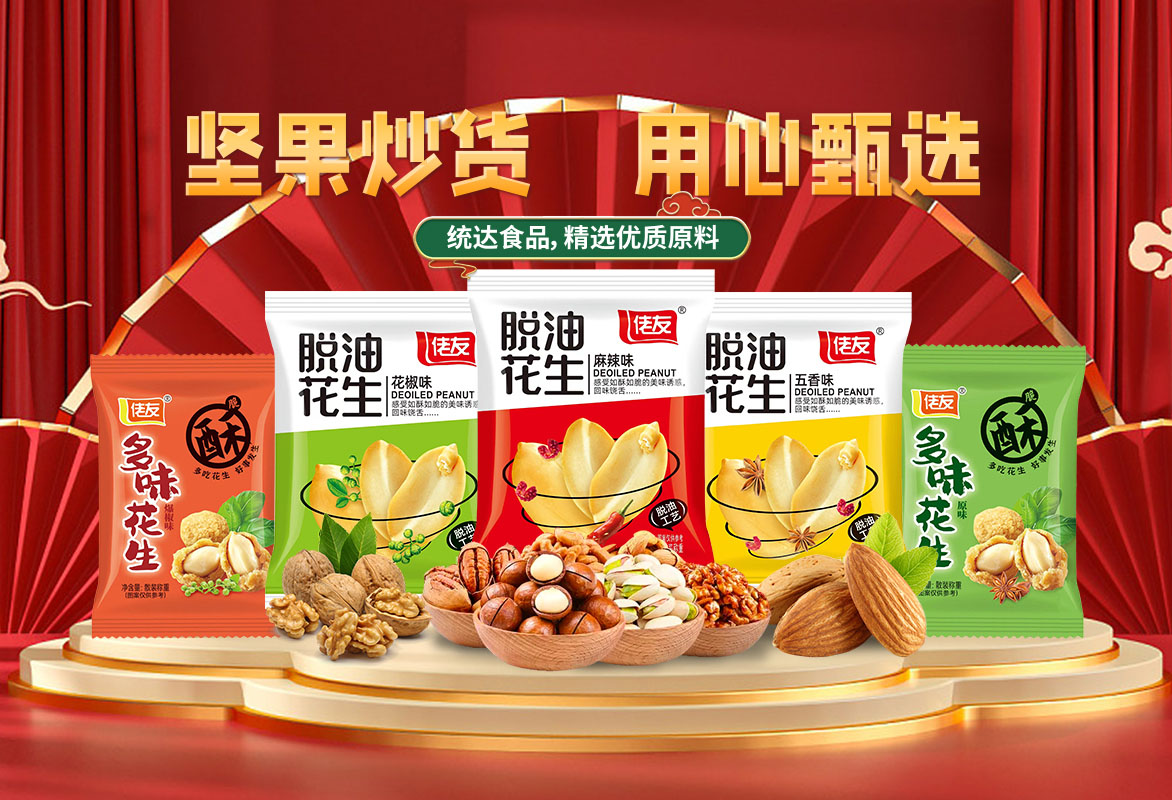 洛陽市統達食品有限公司創建于2013年,坐落于風景秀麗的嵩山腳下,東依省會鄭州、隴海、焦枝兩大鐵路在此交匯,西連高速,洛界高速,縱橫東西南北,207國道,交通便利。當地環境優美。經濟繁榮昌盛,實為興業辦企,鴻運福順的好地方。少林寺,白馬寺,龍門石窟,玄奘故里等名勝古跡星羅棋布,近在咫尺,盡展千年華夏文明?! ∥覐S是一家集生產,研制,銷售為一體的食品加工企業,總投資1500萬元,廠房占地面積5000平方米,員工100余人,其中技術人員20余人,年加工能力達1500余噸。公司以堅果炒貨為主導,自主三大品牌:統達牌、紅仁館牌、佬友牌和授權品牌速達,主要產品有酒鬼花生系列,麻辣花生系列,香辣酥系列,果仁裹粉類系列,怪味胡豆系列,蠶豆、青豆系列等多個品類。產品暢銷全國各地,深受用戶好評。產品選自上等原料經多次精選而制,秉承濃郁的特色風味,保留其原材料的營養和原汁原味,富含不飽和脂肪酸和人體必需的氨基酸和鋅元素,不含膽固醇,黃曲霉素,不添加防腐劑、著色劑;具有濃郁獨特的香味,是真正的“從土地到餐桌”的健康食品。產品特點:色澤金黃,顆粒飽滿,然后經多種工藝加精良的天然配料精制而成,鎖生產出來的產品既保持著產品的獨到的口味,又不失產品天然的營養成分,滋味純正,辣椒鮮紅食之麻,辣,香,酥,甜,口感獨特,食后滿口生香,欲罷不能。久食不厭,老少皆宜,居家旅游,佐食配茶,宴賓饋友之佳品,深受廣大顧客歡迎和贊揚?! ∥覀儗⒁跃康墓に嚕茖W的管理,嚴格的質量控制,優異的品質保障,以誠信,創新,勤奮,求實的企業精神,立于強者之林,迎接新的挑戰。以飽滿的熱情迎接與你的合作。  本公司“以質量求生存,以誠信求發展”歡迎有志之士加入我們的團隊,攜手共創美好明天!